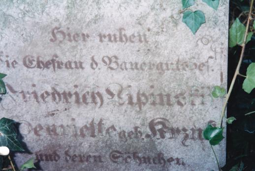 Hier ruhen die Ehefrau d. Bauerngutsbesitzers Friedrich Lipinsky Henriette geb. Krzuk und deren Söhnchen |